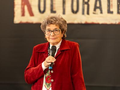 IV. Ostatnim tematem była – „Żywotność gwary kociewskiej w twórczości Ryszarda Walkowskiego, autora wydanego niezwykłego kalendarza z kociewskimi opisami kolejnych miesięcy. Aby podkreślić świetną znajomość i posługiwanie się gwarą starokociewską w odmianie tzw. tczewskiej, referentka M. Pająkowska-Kensik omówiła zawartość przygotowanej do druku książki R. Walkowskiego, „Kociewiak na wyginięciu. Rozważania o dziedzictwie kulturowym i języku na skraju zapomnienia”. Obecny na biesiadzie autor tekstów bardzo dobitnie zaprezentował wybrany fragment z „Rozmów Andzi i Maćka...”