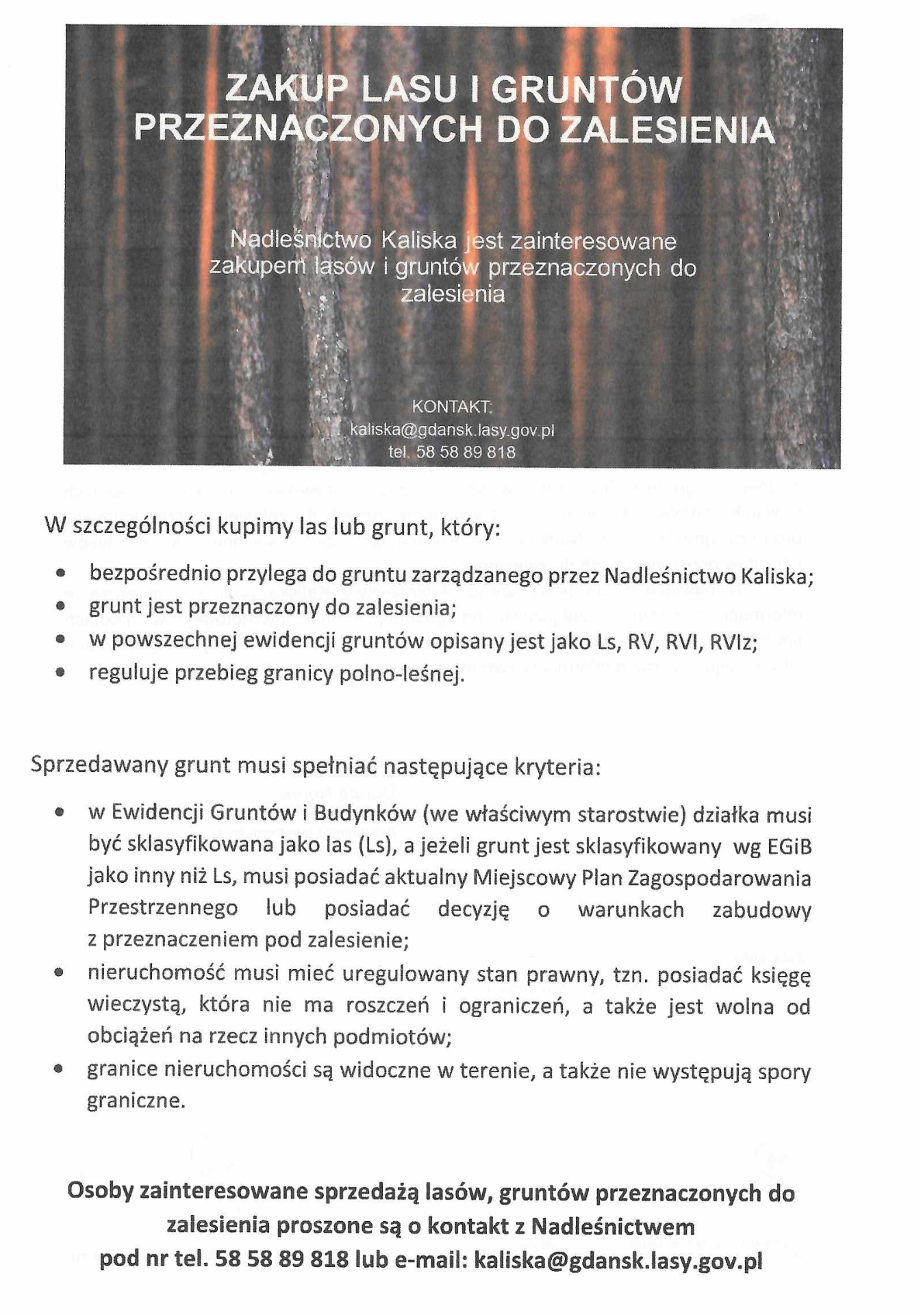 ZAKUP LASÓW I GRUNTÓW - NADLEŚNICCTWO KALISKA