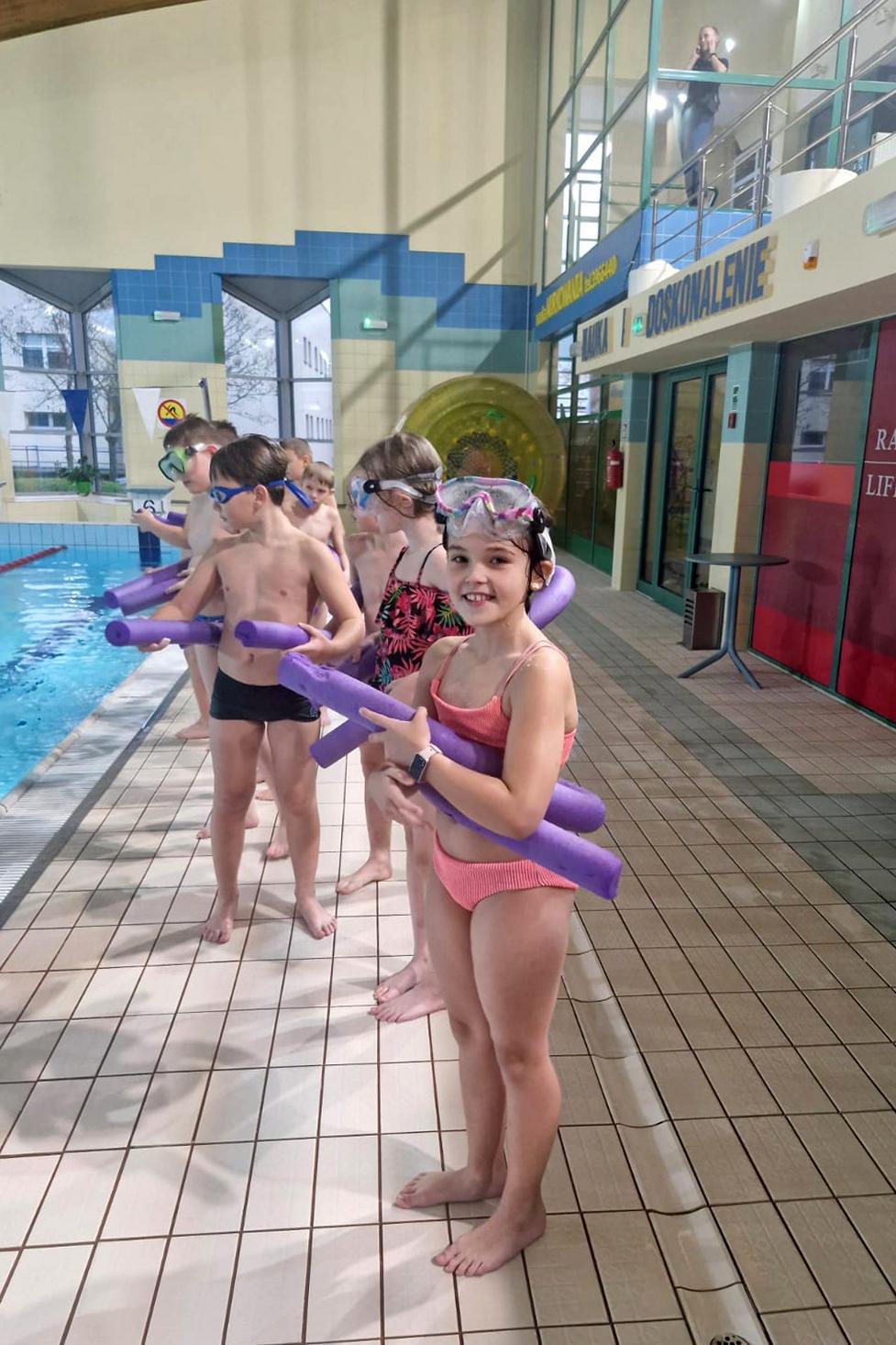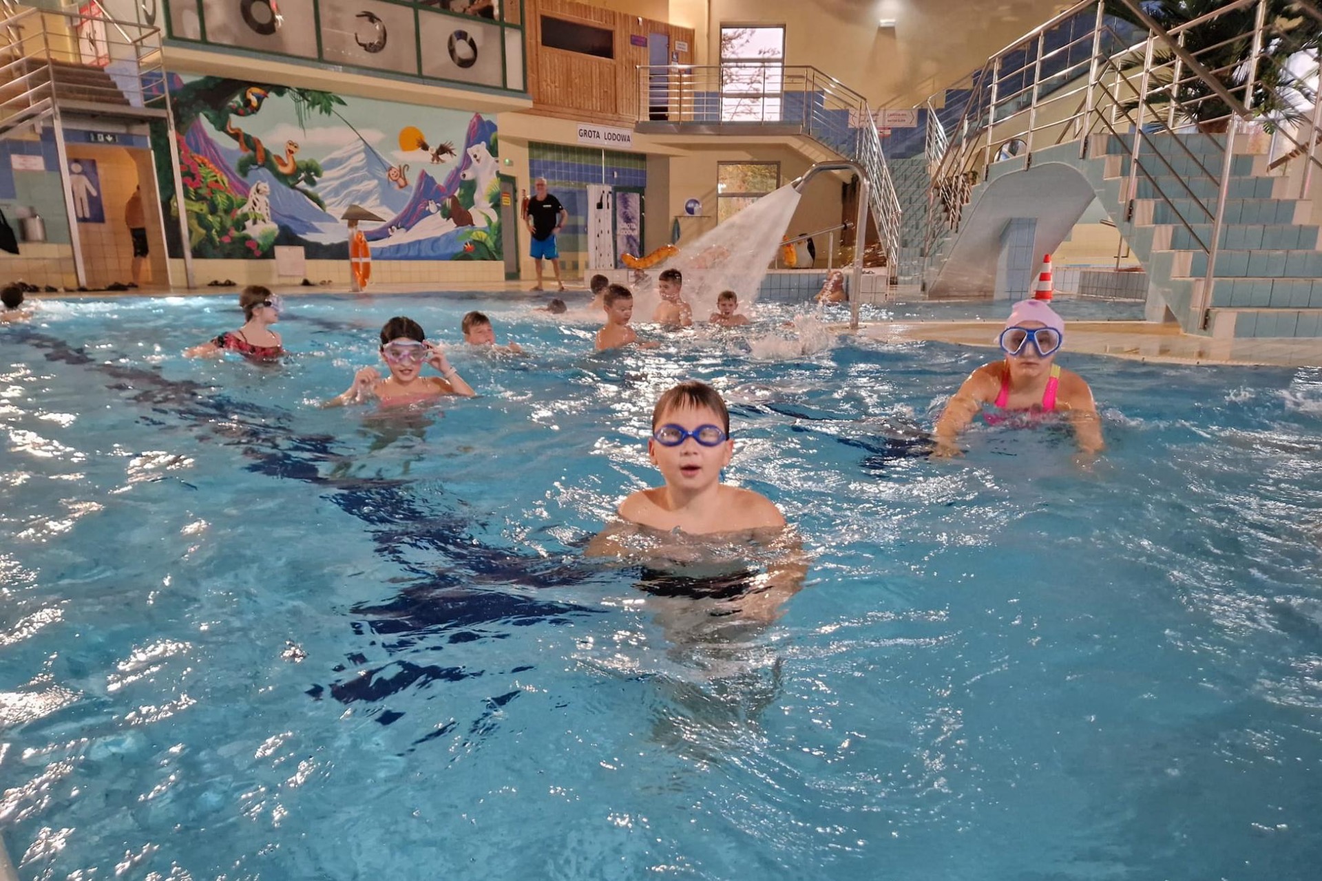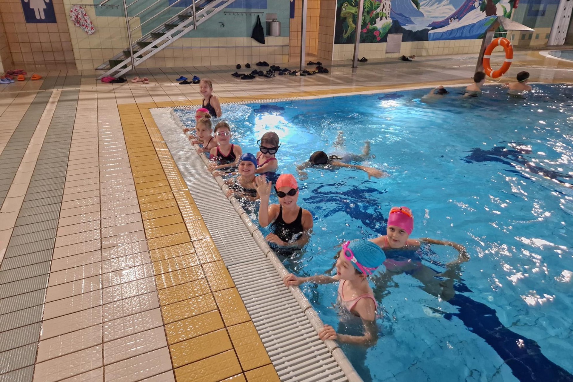 Zakończyliśmy realizację kolejnej edycji nauki pływania dla dzieci, zorganizowana w ramach projektu „ABC pływania”. Jesienią 2025 roku w bezpłatnym kursie nauki pływania uczestniczyło 36 dzieci uczęszczających do klas trzecich w naszej szkole podstawowej. Zajęcia odbywały się w Parku Wodnym w Chojnicach. Dzieci udział wzięły w dziesięciu popołudniowych wyjazdach na basen, z częstotliwościąraz w tygodniu. Pod okiem instruktorów uczestniczyły w zajęciach sportowych z zakresu nauki pływania, w łącznym wymiarze 20 godzin lekcyjnych.Dysponowały również chwilą czasu wolnego, podczas którego mogły korzystać z wszystkich atrakcji Parku Wodnego. Na pływalni dzieci oswoiły się z wodą i nauczyły się podstawowych umiejętności pływackich oraz zapoznały się z zasadami bezpiecznego przebywania w wodzie i w pobliżu akwenów wodnych.