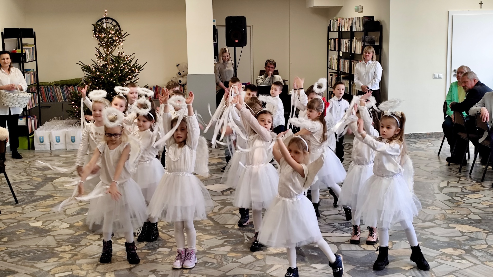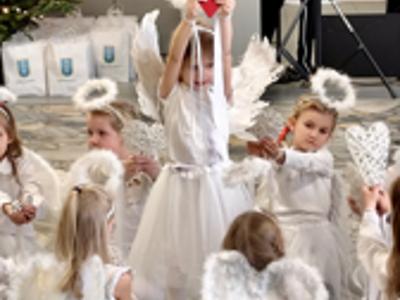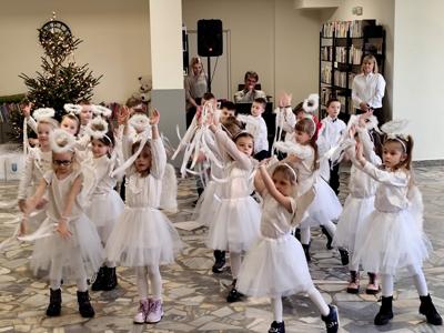 Wyjątkowy, świąteczny nastrój stworzyły przedszkolaki z grupy „Delfinki”, prezentując wzruszający program artystyczny, nagrodzony gromkimi brawami. Następnie ksiądz proboszcz Ireneusz Brzeziński pobłogosławił opłatek, po czym uczestnicy spotkania podzielili się nim, składając sobie nawzajem serdeczne życzenia.