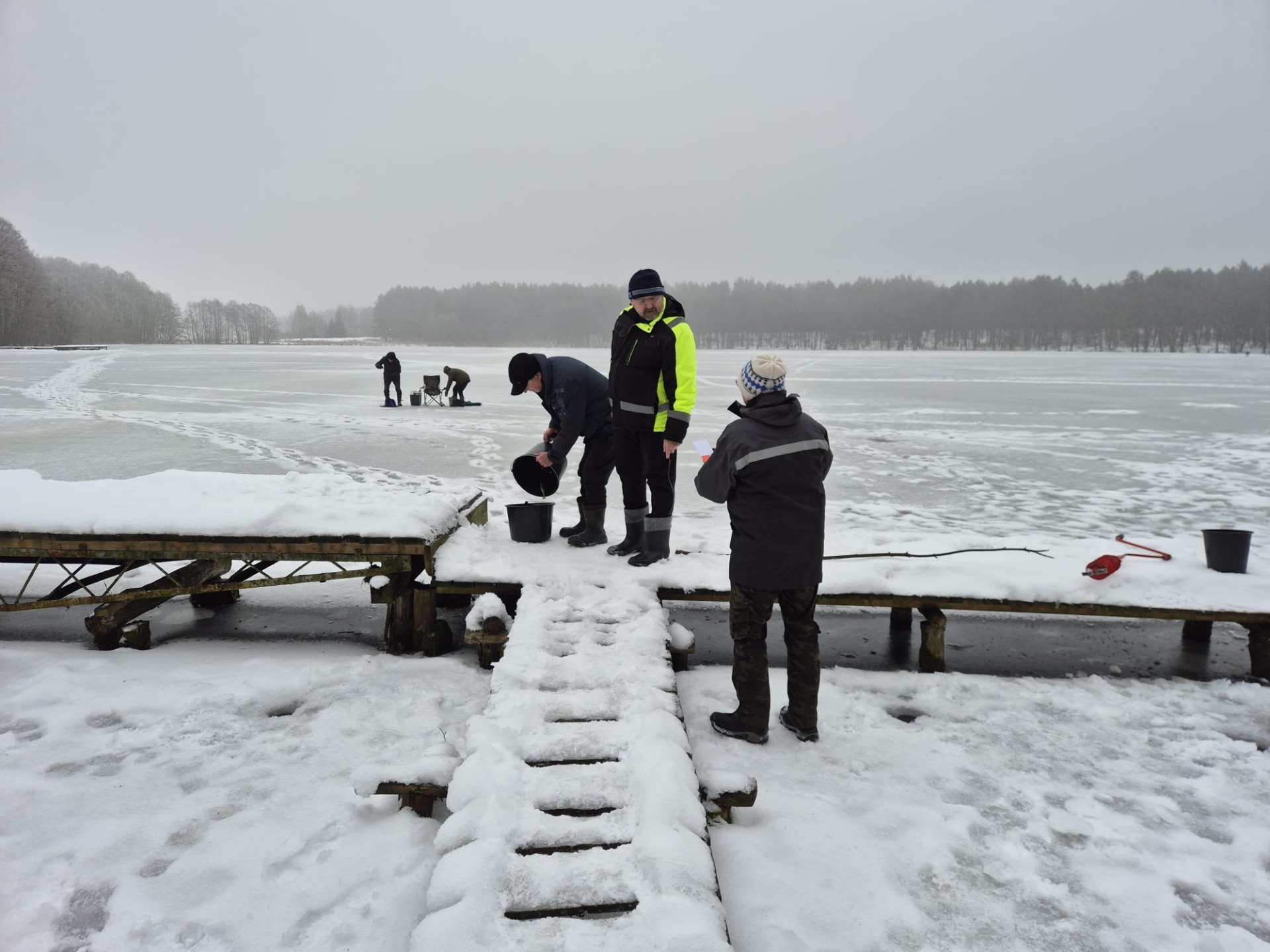 Zawody rozpoczęły się zbiórką o godz. 7:30, a po odprawie technicznej i omówieniu zasad, punktualnie o 8:00 uczestnicy rozpoczęli wędkowanie. Warunki były typowo zimowe – temperatura wynosiła około -4°C, a lód osiągał grubość 18 cm, co zapewniało bezpieczne i komfortowe łowienie.