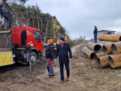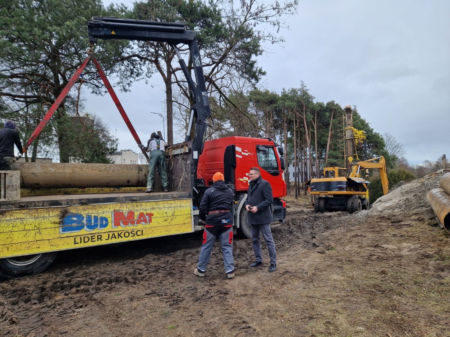 Wybudowana została sieć wodociągowa i kanalizacyjna w odcinku drogi przy ul. Mickiewicza oraz sieć wodociągowa przy ul. Krętej. W czwartek, 15 lutego zdemontowano maszynę wiertniczą H 4, za pomocą której wykonano otwór na głębokość 120 m.